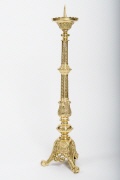 Altarleuchter aus Messing massiv in der Farbe Gold poliert. Der Kerzendorn ist abschraubbar. Altarleuchter für Kerzen bis zu einem Ø 10 cm geeignet. Altarleuchter in Kirchenqualität in Handarbeit hergestellt.