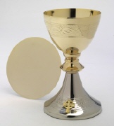 Ciborium in gehämmerter Struktur und vergoldet Ø 13 cm und in der Höhe 6,5 cm. Ciborium in Kirchenqualität in Handarbeit hergestellt.