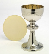 Kelch mit Patene & Etui, Messing, gold, H 26 cm
