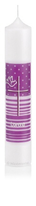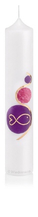 Taufkerze mit oder ohne Namensverzierung Höhe: 265 mm Durchmesser: 50 mm Grundverzierung: Lila, Rosa und Fisch Namensverzierung in der Farbe: Gold Lieferzeit: 7 Arbeitstage HECK Kirchenbedarf - Ih... 41,69 EUR