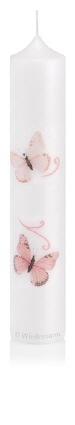 Taufkerze mit oder ohne Namensverzierung Höhe: 265 mm Durchmesser: 50 mm Grundverzierung: Schmetterlinge in rosa Namensverzierung in der Farbe: Silber Lieferzeit: 7 Arbeitstage HECK Kirchenbedarf ... 32,91 EUR