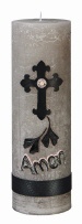 Gedenkkerze "Amen" Grau 200 x 70 mm
