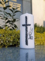 Trauerkerze "Kreuz mit Alpha & Omega" 200 x 80 mm