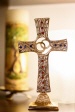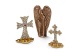 Vergoldete Stehkreuze und moderne Wandkreuze aus Metall.