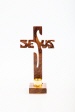 Stehkreuz "Jesus" in Holz 19 cm mit Kerzenhalter