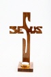 Stehkreuz "Jesus" in Holz 29 cm mit Teelichthalter
