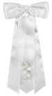 Kerzen Schleife Weiß aus Satin (Kreuz aus Silber)