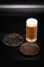 Kerzenteller Blätterstruktur schwarz/gold, Ø 12 cm
