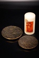 Kerzenteller in Wabenstruktur schwarz/gold, Ø 14cm