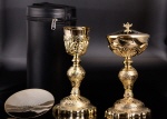 Kelch mit Patene & Etui, Messing, gold, H 26 cm