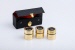 Ölset bestehend aus 3 Behäter mit Gravur aus Messing Gold mit schwarzem Etui. 88,33 EUR