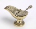 Schiffchen mit Löffel, vergoldet, Messing, 7x13 cm