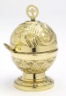 Schiffchen mit Löffel, Messing, gold, H 13 cm