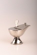 Schiffchen mit Löffel vernickelt, Messing, H 14 cm